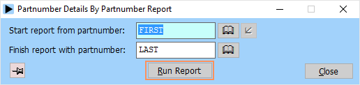 The partnumber details reports give the stock details of a range of partnumbers or families. These reports are useful for reference and checking purposes:
