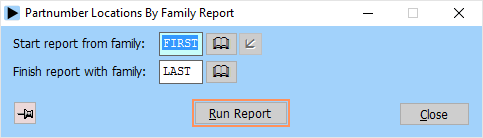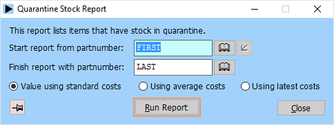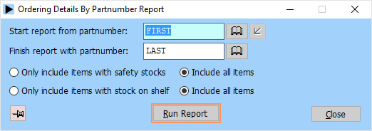 The partnumber locations report gives details of a range of partnumbers, including the normal stock locations of the item. This is a handy report to keep in your stores: