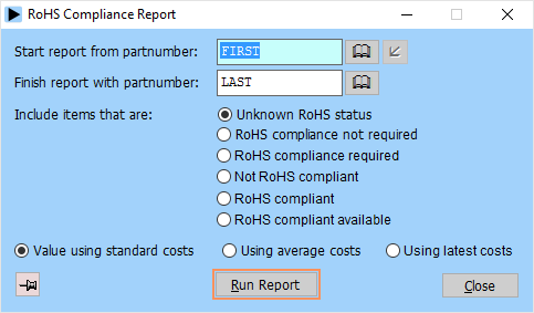 An urgently required items report lists urgently needed items from a range of partnumbers. The report can include just purchased items, just made in-house items, or both. This report shows the current stock holding figures for each item and can act as a useful “chase-list” for your purchasing and production departments: