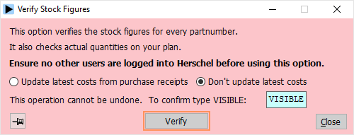 After using the change a partnumber tool option the verify stock figures option must be run to update Herschel correctly: