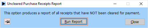 The uncleared receipts report lists purchase receipts that have not yet been cleared for payment: